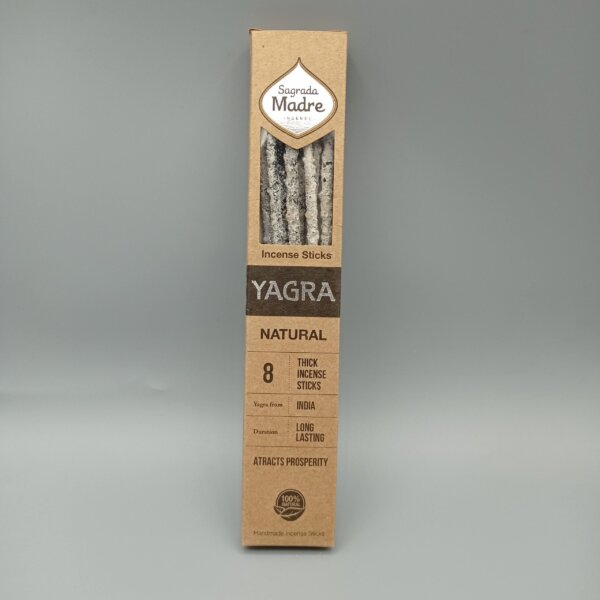 Se trata de un incienso natural al 100%. En su composición, podrás ver que contiene la resina yagra, el aglutinante, la sal y carbón. Nada más. Ya de por sí, la yagra, es una resina hindú de tacto semejante al talco. Tiene un toque cítrico, pero es ligeramente dulce. Su misión en esta vida es atraer la abundancia y la prosperidad abriendo los caminos. Es por ello, que es tan popular.