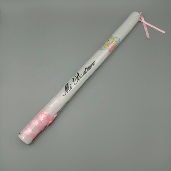 Se trata de una vela blanca de 40cm que estará encendida durante toda la ceremonia del bautizo del niño o de la niña. Esta vela, debe ser encendida por los padrinos y directamente desde el cirio Pascual. Los padrinos, son los que ayudarán a los padres a guiar a los niños, en el camino correcto del catolicismo. Esta vela, se empleará como guía, en muestra de que ellos muestran la luz, para que esas nuevas almas, salgan de la oscuridad y empiecen su nueva vida.